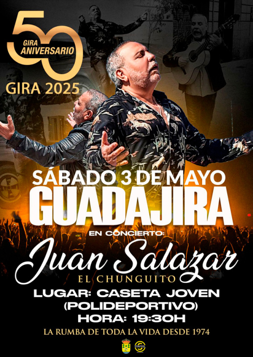 La jornada del sábado continuará por la tarde, desde las 19:00 horas y en la Caseta Joven, subirá al escenario Juan Salazar, representante del grupo legendario ‘Los Chunguitos’, un referente de la rumba flamenca y la música popular española, que hará vibrar con sus éxitos que han marcado a generaciones enteras, un concierto que se incluye en la gira del 50 Aniversario del grupo.