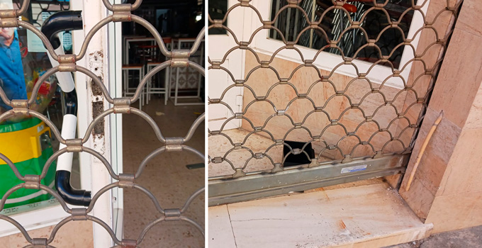En el centro de Montijo, en la Cafetería Álvarez, entraron reventando la reja y la puerta de la cafetería, accediendo al bar para llevarse el tabaco y la recaudación de la máquina, algo de efectivo que había en el bar, y también aprovecharon para llevarse jamón, provocando varios destrozos.