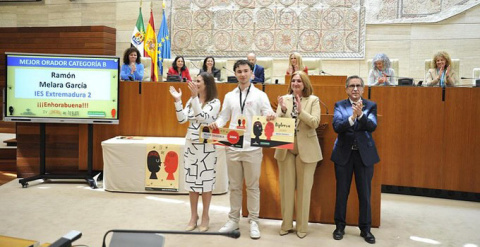 Además, han recibido los premios a 'Mejor oradora' de la categoría de ESO, Victoria Conejero Albarrán, y 'Mejor orador' en la categoría de Bachillerato, Ramón Melara García, ambos del IES Extremadura de Montijo.