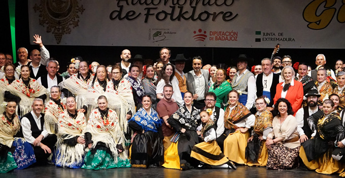 Sobre el escenario tres grandes grupos: Agrupación Cultural Araval de Valdelacalzada, Asociación Cultural Folklórica la Miajina de Talarrubias y Asociación Folklórica Renacer de Badajoz. Ellos con sus músicas, sus bailes y sus espectaculares vestuarios, llenaron el espacio de un sabor puramente extremeño.
