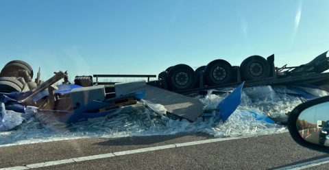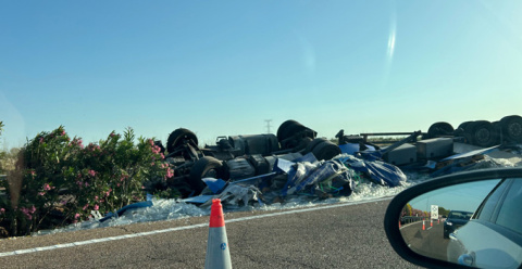 Alrededor de las 21:00 horas se producía un accidente en el kilómetro 354 dirección Madrid, a la altura de Torremayor, en el que el vuelco de un camión que transportaba botellas de cristal, obligó a cortar la circulación en la carretera, ya que el vehículo ocupaba tras el accidente casi los dos carriles de la autovía y parte de la mediana, quedando parte de la carga esparcida por el suelo.