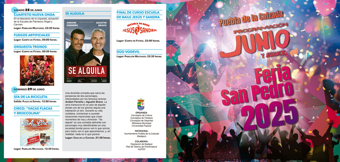 Puebla de la Calzada celebra en junio, uno de sus meses más esperados, la Feria y Fiestas en honor de San Pedro, y desde el Ayuntamiento tienen organizadas diversas actividades dirigidas a todos los públicos que ocuparán todo el mes.