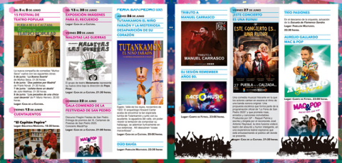 El sábado 28 de junio el Cuarteto Nueva Onda estará en el Pabellón Multiusos, quema de fuegos artificiales a las 00:00 horas y en el Campo de Fútbol la actuación de la Orquesta Tronos.