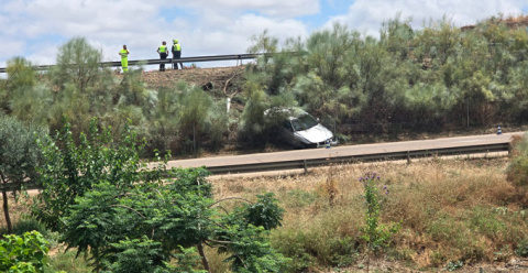 Un conductor sale de la vía y vuelca con su vehículo en la A5, a la altura de Lobón