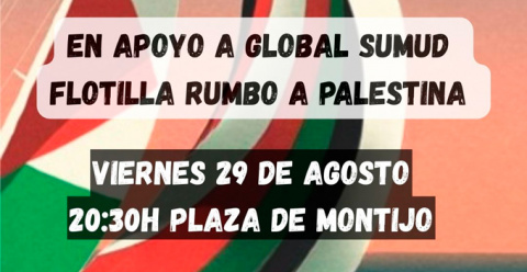El colectivo Montijo con Palestina en colaboración con el Movimiento Santuka, organizan el viernes 29 de agosto a las 20:30 horas, en la Plaza de España, una batucada en solidaridad con el pueblo palestino y como mensaje de apoyo al Global Sumud Flotilla, que partirá desde Túnez el 31 de agosto, reuniendo a decenas de embarcaciones dispuestas a desafiar el asedio humanitario impuesto a Gaza por parte de Israel.