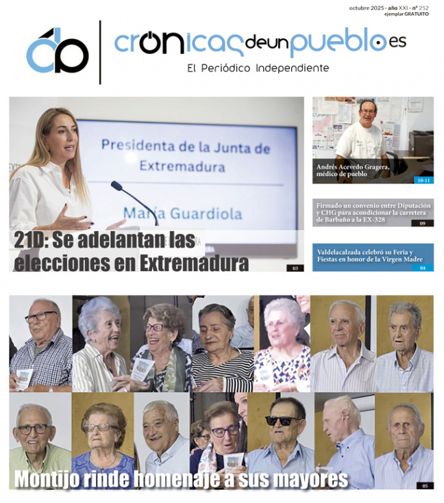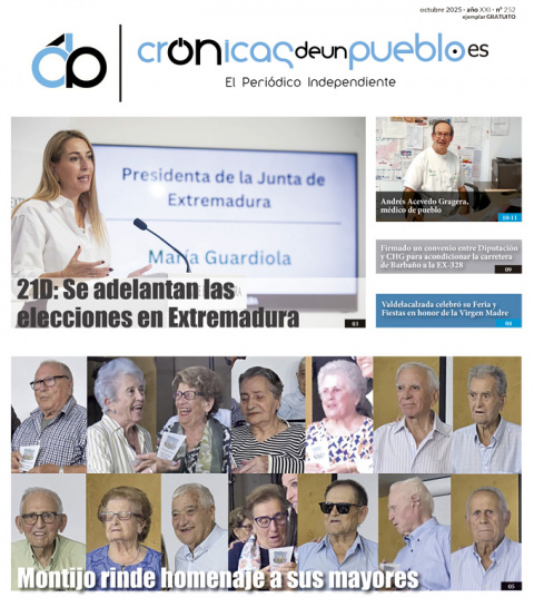 En este número, en el que traemos un resumen de las noticias más destacadas del mes de octubre, llevamos en portada el adelanto electoral anunciado por la presidenta de la Junta de Extremadura, María Guardiola, que tendrán lugar el próximo 21 de diciembre.