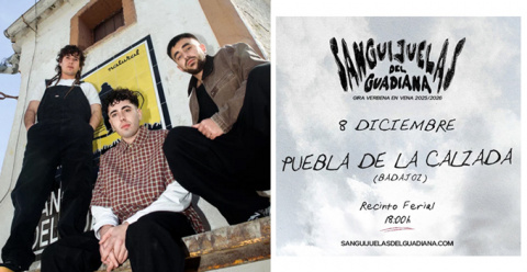Sanguijuelas del Guadiana, el grupo del momento, ofrecerá un concierto con entrada gratuita en Puebla de la Calzada.