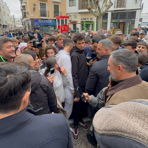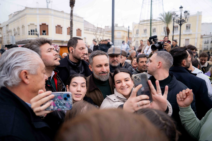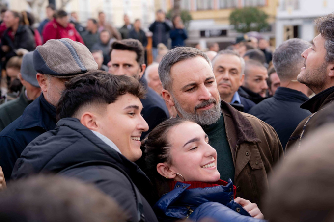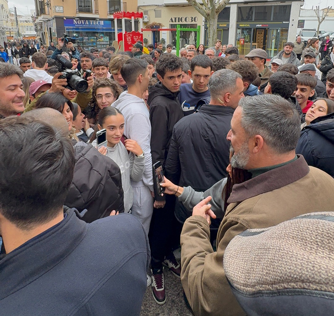 El líder de Vox era seguido en el recorrido por algunas personas que se arremolinaron en torno a él. Entre los presentes, gran cantidad de adolescentes y jóvenes que quisieron saludarle y fotografiarse junto a él.