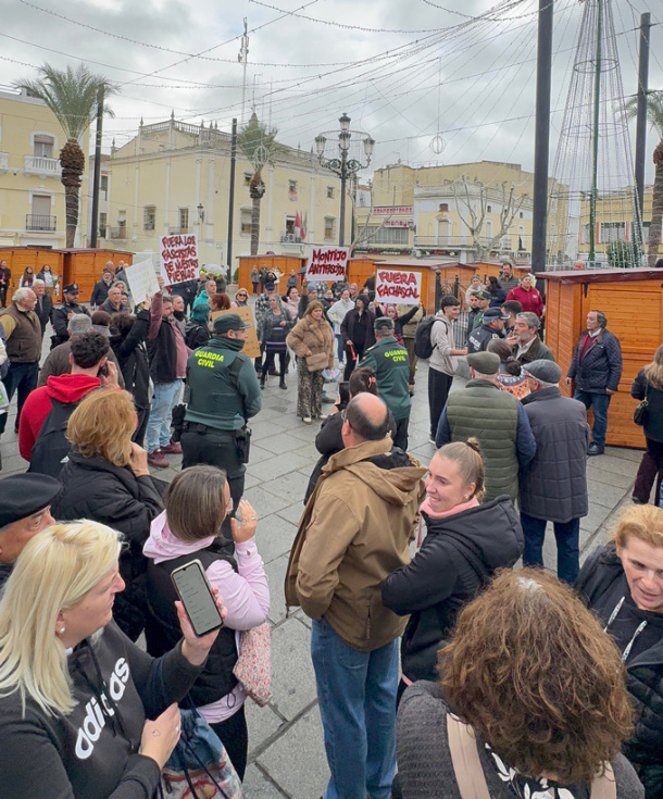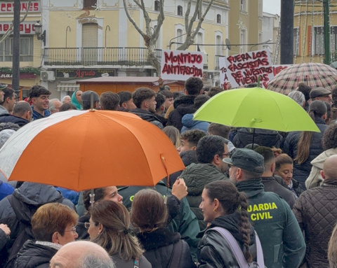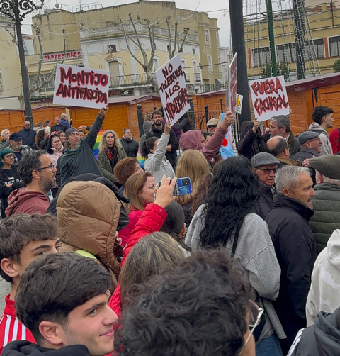 Al llegar a la Plaza de España, Abascal era también recibido por un grupo de montijanos que mostraban carteles donde se podía leer “Montijo antifascista”, “No toleramos a los intolerantes”, “Fuera Fachascal” o “Fuera los fascistas de nuestros pueblos”.