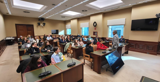 Aprovechando la visita a Madrid, los jóvenes poblanchinos realizaron una visita al Congreso de los Diputados, donde fue recibido por Juan Antonio González, diputado socialista de Puebla de la Calzada, quien les guio durante el recorrido, explicando a los pequeños los espacios más significativos del Parlamento, además de explicarles la importancia de vivir en un Estado Democrático y la necesidad de cuidar la Democracia del país.