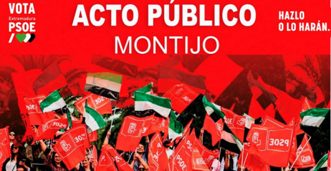 El Partido Socialista organiza un acto público, hoy miércoles 10 de diciembre, en el que intervendrán Rita Muñoz, secretaria general del PSOE en Montijo; Raquel del Puerto, presidenta de la Diputación de Badajoz; y Juan Carlos Rodríguez Ibarra, ex presidente de la Junta de Extremadura.