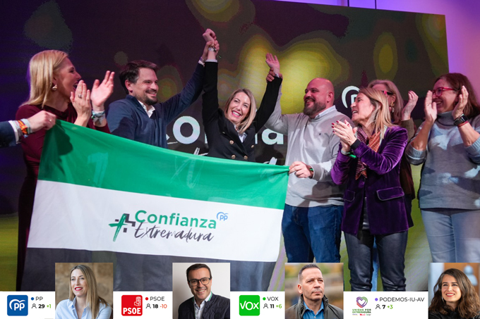 María Guardiola obtiene en estas nuevas elecciones 29 diputados, obteniendo un representante más para su grupo en la Asamblea de Extremadura. Lejos queda la mayoría absoluta que necesitaba el PP para no depender del resto de partidos en su proyecto de gobierno.