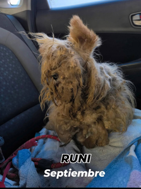 La historia de Runi se hacía viral hace solo unos meses. La organización Amor Animal subía a sus redes sociales un vídeo en el que compartía la historia de este perro que había llegado hasta la asociación en muy mal estado. Runi tenía el pelo lleno de enredos en forma de rastas que le impedían una correcta visión y que le provocaban heridas al tirar de su piel. Además, no tenía dientes. El animal recibió atención veterinaria. Hubo que raparle todo el pelo y administrarle medicina. Darle cuidados que le restaurara confianza y con el que Runi sintiera amor y cuidado. A pesar de todo, Runi se mostró como un perrito activo y cariñoso que agradecía todas las caricias.