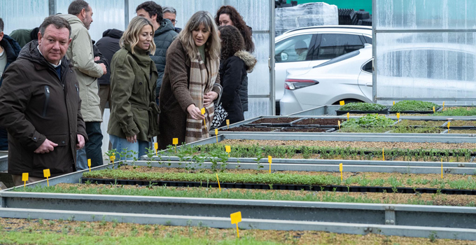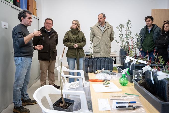 Durante la mañana estuvo en las instalaciones del vivero Rueda Chica, en el que la Junta de Extremadura tiene un Centro Regional de reproducción de planta seleccionada mediante técnica in-vitro y donde se desarrolla el Programa de Mejora Genética Forestal de Extremadura. En el centro, los profesionales trabajan en la lucha contra las principales enfermedades forestales, incidiendo especialmente en la seca de los Quercus y las patologías del castaño. De esta forma, tratan de adaptar genéticamente las especies forestales al cambio climático, impulsando el valor de la bioeconomía forestal y reforzando el valor económico de productos como la bellota el corcho, el piñón o la castaña.