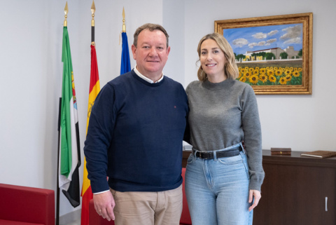 La presidenta de la Junta de Extremadura, María Guardiola, ha visitado Pueblonuevo del Guadiana, donde se reunión con su alcalde, Pedro Pablo Rodríguez, para tratar varios puntos de interés para el municipio.