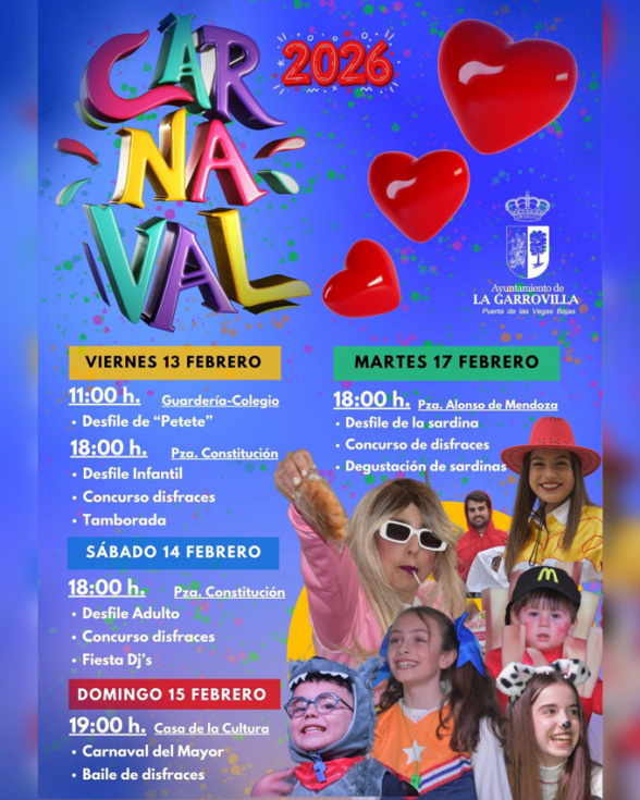 La Garrovilla inicia el desfile de la sardina a las 18:00 horas desde la Plaza Alonso de Mendoza, donde además de la degustación de sardinas, habrá concurso de disfraces.