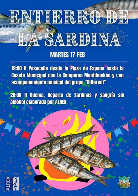 En Montijo la programación se inicia a las 19:00 horas en la Plaza de España, donde se darán cita los participantes para acompañar a la sardina en un pasacalles que contará con la participación de la comparsa Montihuakán y el grupo Different, y que finalizará en la Caseta Municipal. Tras la quema de la sardina, a las 20:00 horas, se repartirán sardinas entre los asistentes y sangría sin alcohol elaborada por Alrex Montijo.