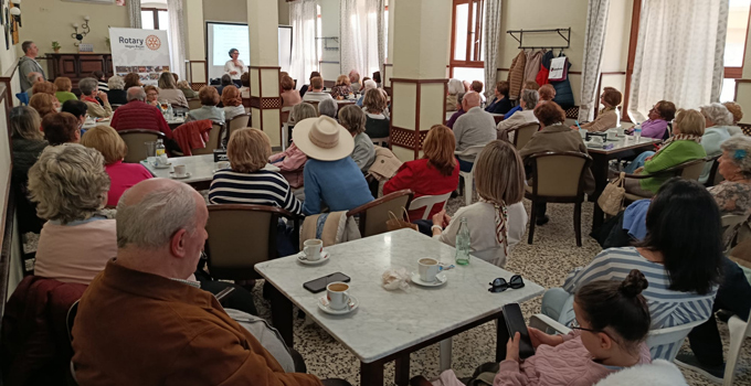 Actividad organizada por el Club Rotary Vegas Bajas, junto con el Núcleo de Salud Comunitaria del Centro de Salud Montijo-Puebla. El Salón Social del Casino tuvo el aforo completo a la charla, que de manera didáctica fue muy bien expuesta por Encarna Nieto, enfermera del Centro de Salud.