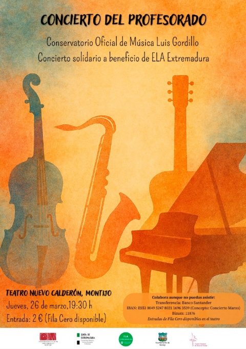 Este concierto tendrá además un carácter solidario, ya que la recaudación se destinará íntegramente a la Asociación ELA Extremadura. Asimismo, se habilitará una fila cero y la posibilidad de colaborar mediante Bizum para quienes no puedan asistir, pero deseen contribuir. Una tarde especial de música en la que el alumnado del centro podrá ver actuar a su profesorado, en el fondo también una experiencia didáctica.