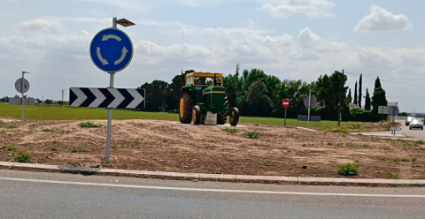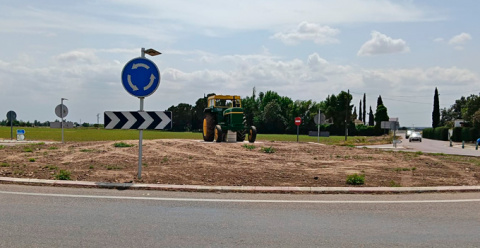 Un tractor en la rotonda de entrada a la Avenida de Europa sorprende a los conductores